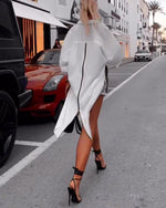 SPECIFICATIONS Style: Casual Material: Polyester Dress Type: Shift dress Neckline: Round Neck Pattern Type: Solid Color Sleeve Type: Regular sleeve Sleeve Length: Long Sleeve Details: Slit Fit Type: Regular Season: Fall,Winter Occasion: Daily Package Includes: 1 x Dress SIZE TABLE Size Bust Length CM INCH CM INCH S 97 37.4 120 47...
