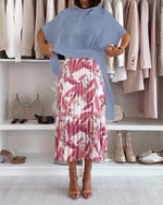 V-Neck Loose-Fitting Christmas Wine Glass Print Top