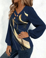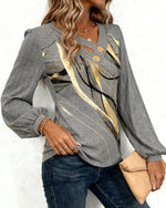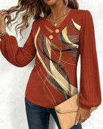 SPECIFICATIONS Top Type: Tops Style: Elegant,Party Material: 95% Polyester 5% Spandex Occasion: Daily,Party Neckline: V neck_V Pattern Type: Solid Color Sleeve Type: Regular sleeve Sleeve Length: Long Sleeve Fit Type: Regular Season: Spring,Fall,Winter Details: Patchwork,Buttons,Shirred Package Includes: 1 x Top SIZE TABLE Size Bust ...