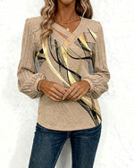 V-neck pleated sequined elegant top