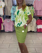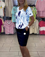 V-Neck Loose-Fitting Christmas Wine Glass Print Top