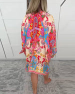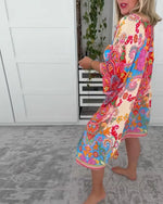 SPECIFICATIONS Style: Casual Material: Cotton Blends Dress Type: Shift dress Dress Length: Maxi Neckline: V neck_V Pattern Type: Print Sleeve Length: 3/4 Sleeve Details: Pocket,Shirred Fit Type: Regular Season: Spring,Fall,Winter Occasion: Daily Package Includes: 1 x Dress SIZE TABLE Size Bust Length CM INCH CM INCH S 97 38.19 132 ...