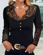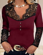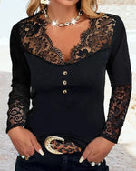 V-neck lace long-sleeve top