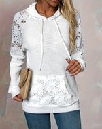 V-Neck Long-Sleeved Lace Casual Hoodie