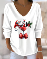 SPECIFICATIONS Top Type: Tops Style: Casual Material: 100% Polyester Occasion: Daily Neckline: V neck_V Pattern Type: Christmas Tree, Snowflake Sleeve Type: Regular sleeve Sleeve Length: Long Sleeve Fit Type: Regular Season: Spring, Fall, Winter Details: Patchwork Package Includes: 1 x Top SIZE TABLE Size Bust Length Sleeves Sho...