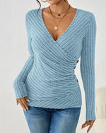 Women'S Long-Sleeved V-Neck Ribbed Sweater